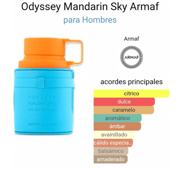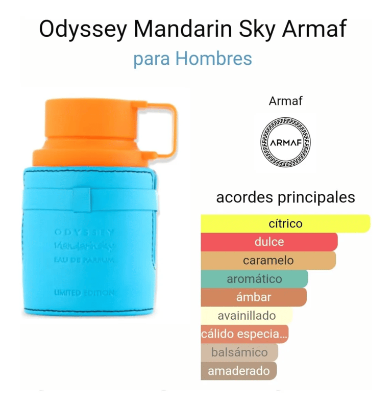 Odyssey Mandarin Sky de Armaf es una fragancia cautivadora de la familia olfativa para hombres, lanzada en 2023.